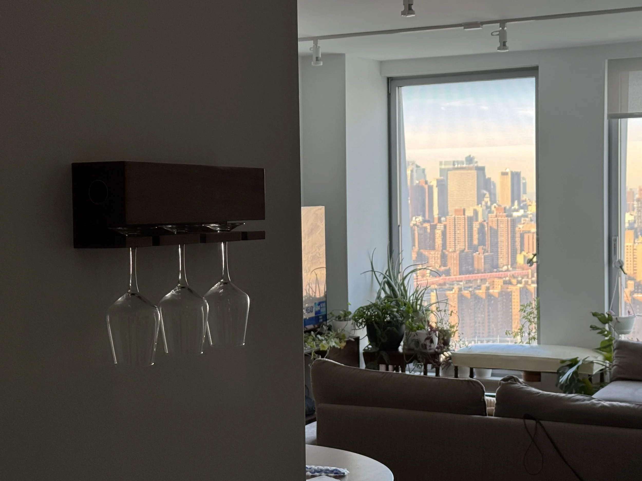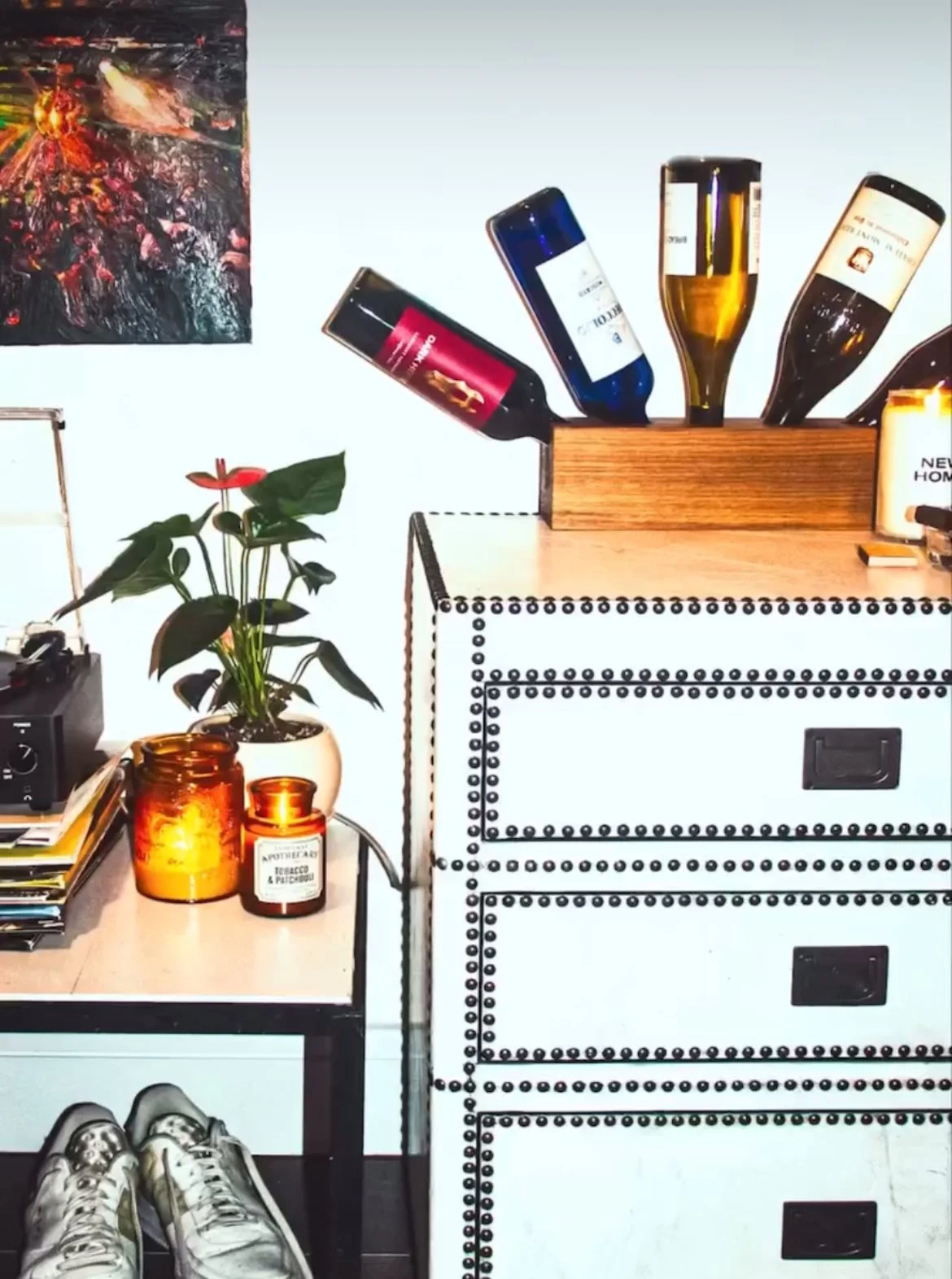 The holes that hold the wine are steel clad for stability, adding a sleek touch of craftmanship.
